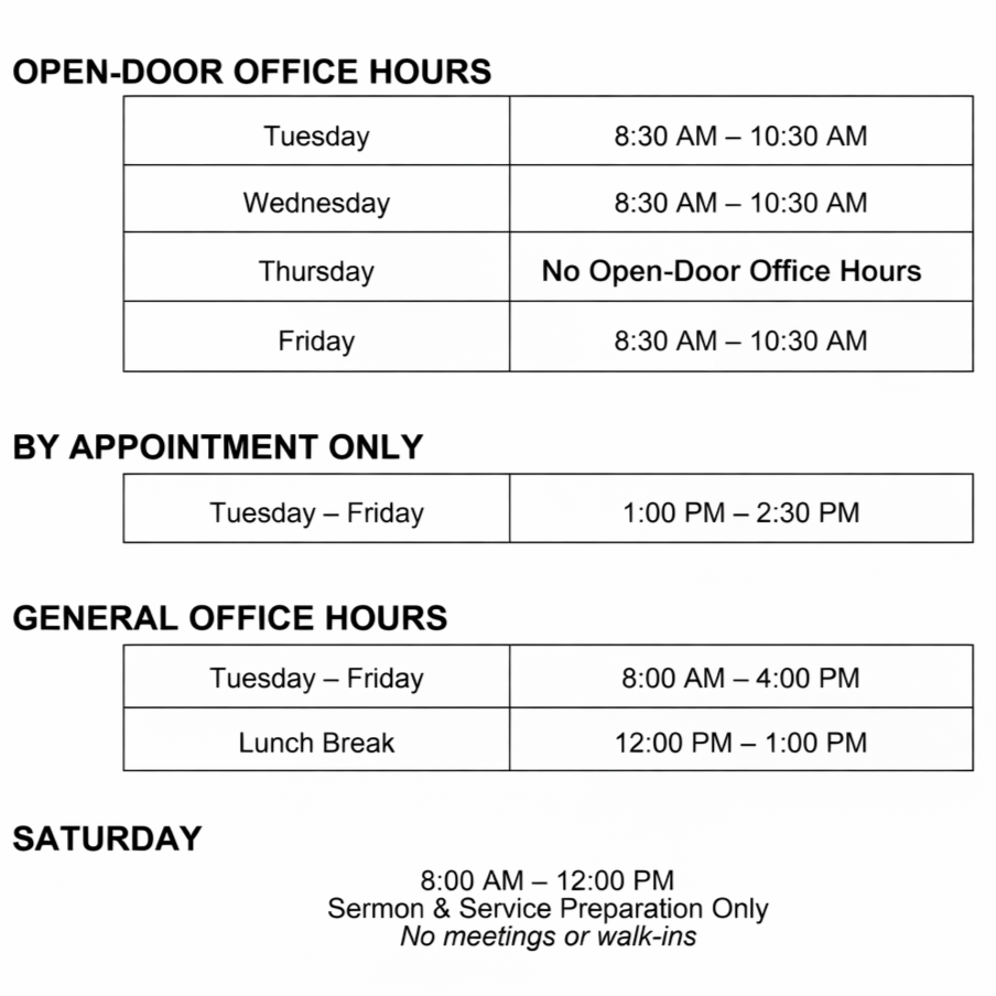 Thank you for helping protect time for prayer, preparation, and pastoral care.